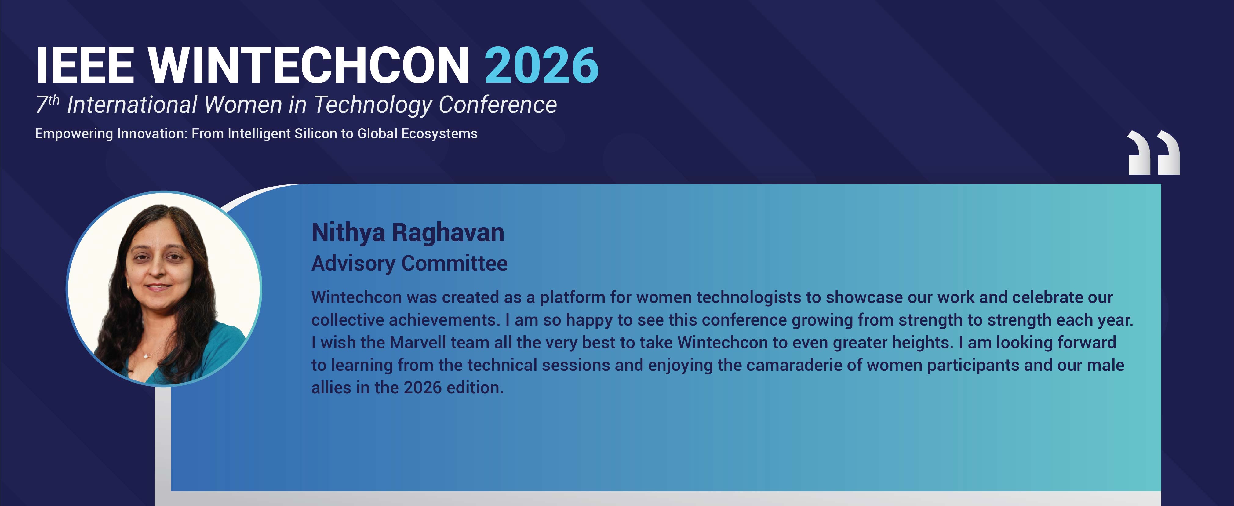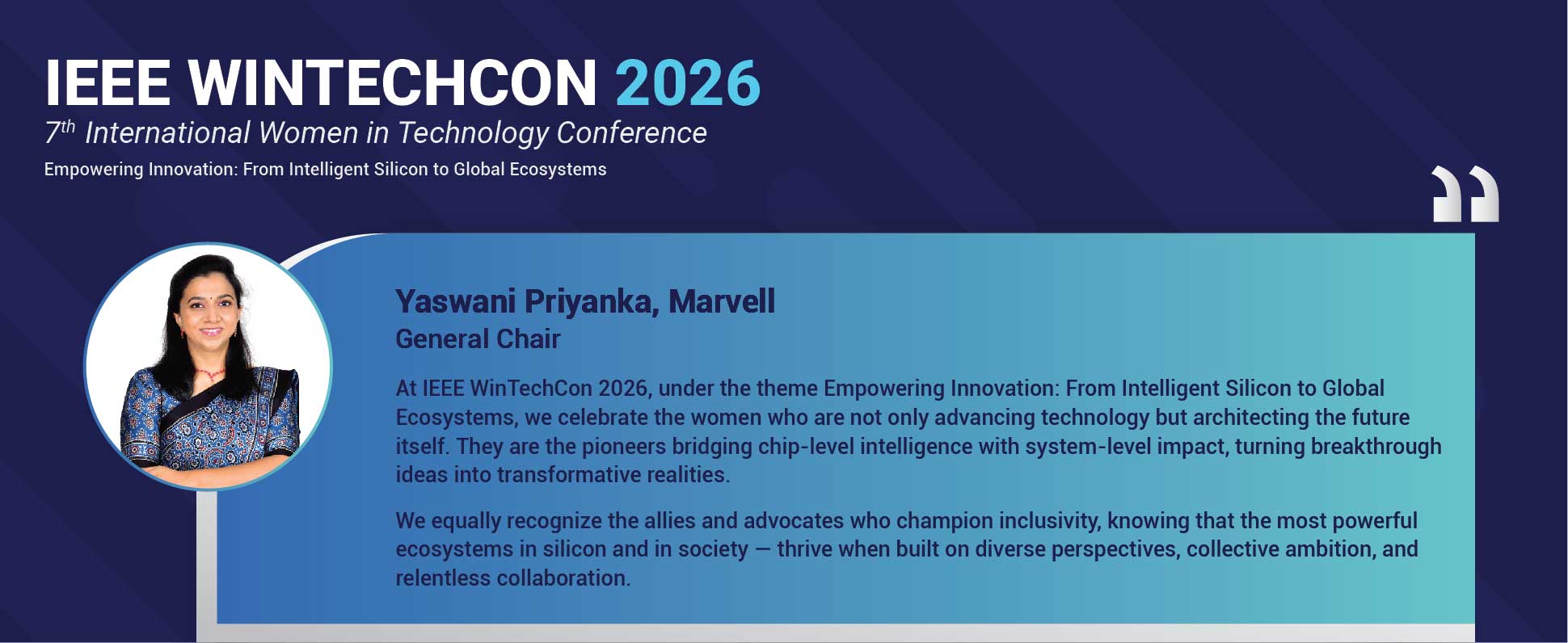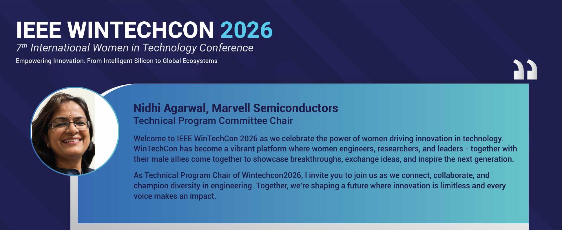 WinTechCon 2026 will be the seventh edition of the conference. It is organized in partnership with IEEE CAS (Circuits & Systems Society) Bangalore Chapter, IEEE Bangalore Section and IEEE WIE (Women in Engineering) Council Bangalore. The theme for this year conference is “Empowering Innovation : From Intelligent Silicon to Global Systems”. Get ready to experience another great year of WINTECHCON and we look forward to seeing you at the conference.